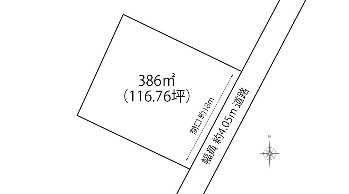 | 土地面積 | 386㎡(116坪) | 地形 | ほぼ長方形 | 地勢 | 平坦・緩傾斜 | 傾斜割合 | 約20% |