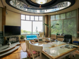 閑静で豊かな緑に囲まれた名鉄赤沢分譲地。伊豆高原駅まで無料シャトルバスが運行されており、お買い物や各地へのお出かけなども楽々。円柱型のリビングより相模湾を望む眺望の良い約85坪の大型6LDKの不動産です。建物は平成6年築の鉄骨造で、タイル張りで設えたデザイン性のある外観が特徴的です。1階と2階を繋ぐ開放感のある造りは、鉄骨造ならでは。温泉付きの浴室や、屋上より海を望むロケーションに富んだ物件です。会社の保養所や、大人数でのご利用にも最適な本物件。是非現地をご覧ください。