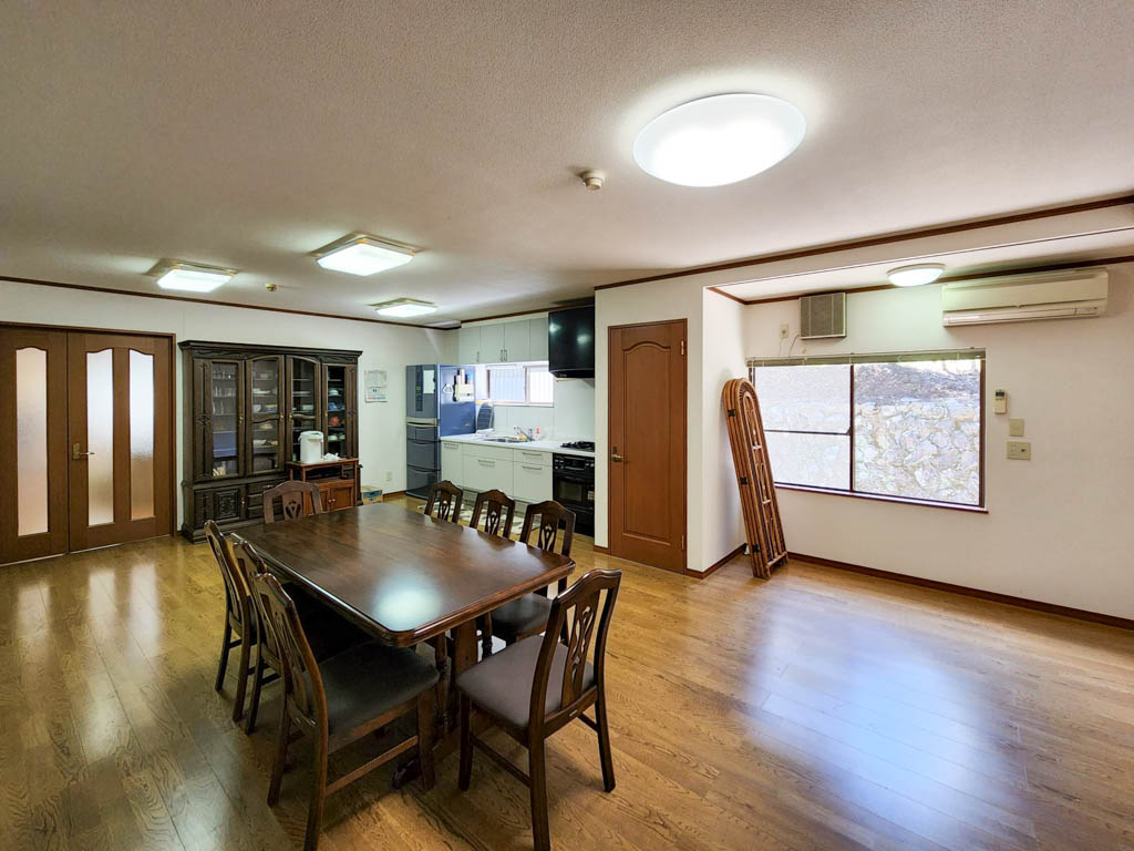 伊東駅より1.6kmの距離にある、小高い丘の上に広がる瓶山旧別荘地内に建つ元保養所9LDKの不動産です。広々としたリビングとダイニング空間は各22帖の広さがあり、9室を備え、保養所としても使用可能。浴室は2つあり湯量豊富な温泉も楽しめます。また、2階より伊東市街地の夜景や海の景色も見える高台のロケーション・昭和の懐かしい空間と増築した新しい居住空間がうまくミックスされたお勧め物件です。
