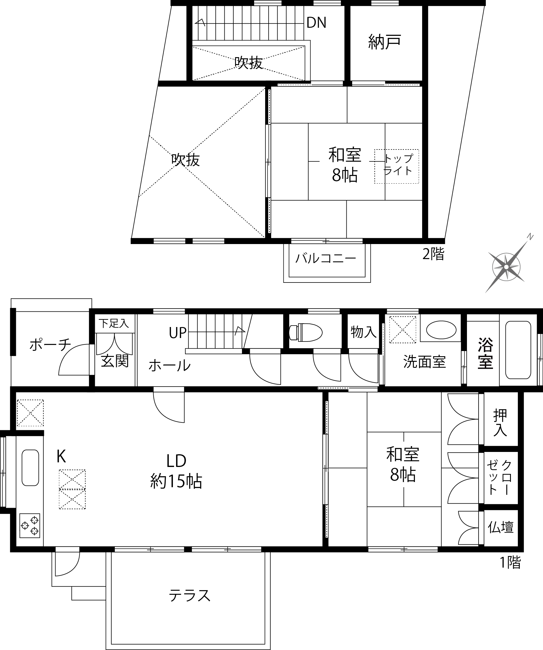 建物面積 82㎡(25坪) 築年月 平成12年3月 構造・階数 木造・2階建て 間取り 2LDK