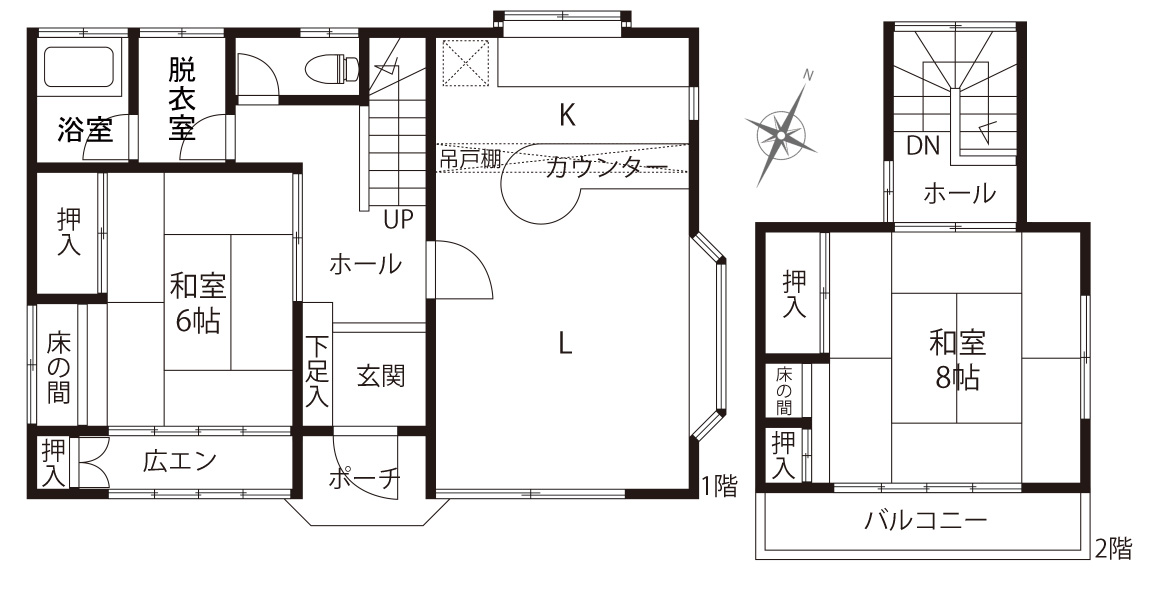 | 建物面積 | 83㎡(25坪) | 築年月 | 昭和60年1月 | 構造・階数 | 木造・2階建 | 間取り | 2LDK |