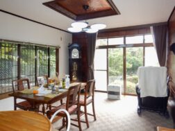 伊豆高原駅より約5.1km、大室山の麓に広がる豊かな自然に包まれたロケーション。南道路に面し陽当たり良好、道路よりフラットで使いやすい敷地です。ガーデニングや家庭菜園を楽しめるゆとりあるお庭付き。温泉付きの2LDKは、浴槽に伊豆石を使用しており、温泉気分を存分に味わえます。別荘としてはもちろん、定住にも適した穏やかな住環境です。