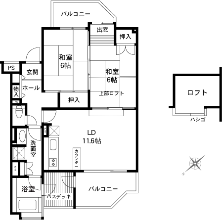 | 専有面積 | 55.29㎡(16.72坪) | 間取り | 2LDK+ロフト | 築年月 | 平成2年7月 | 建物構造 | SRC造 |