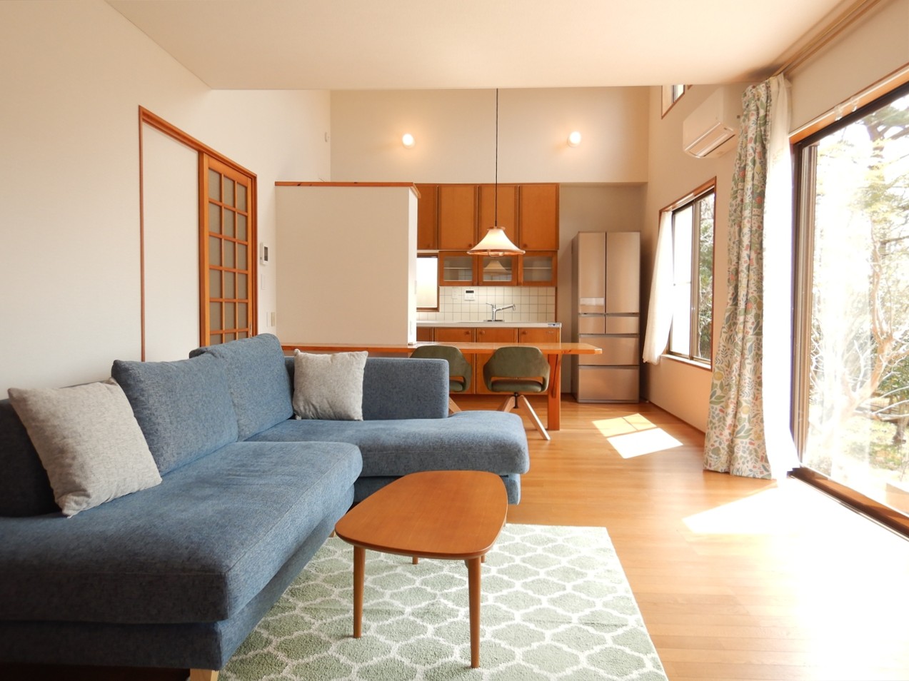 豊かな自然と閑静な住環境が魅力の"伊豆急一碧台別荘地"にある山荘風のリフォーム済み不動産です。約16帖のLDKの一部天井が吹き抜けになっており、明るく開放感があり、随所に木の温もりを感じることができます。