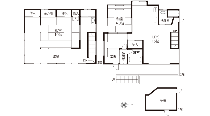 建物面積 118.31㎡(35.97坪) 築年月 昭和57年10月 構造・階数 木造・3階建 間取り 2LDK+N