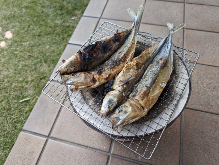 友人よりくさやを頂いたのでこの日は2つの七輪を用意し、