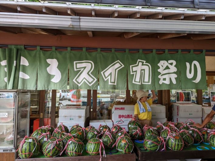 8月14日まですいか・もろこし祭り開催しているので