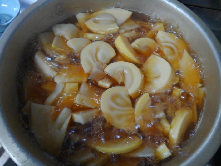 この後、煮たり、近所におすそ分けしたりします。