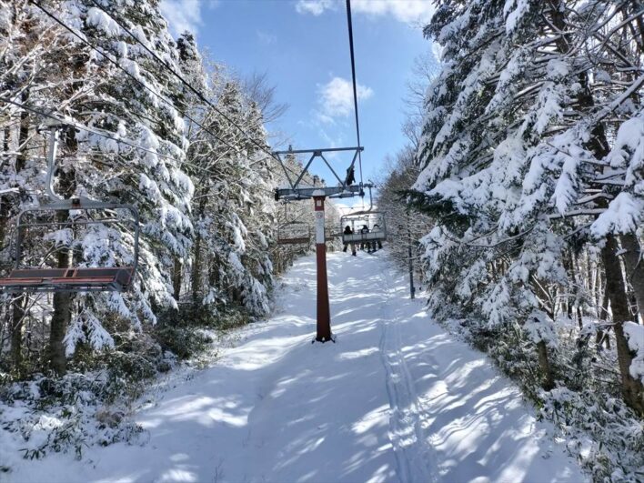 クワッド(4人乗り)リフトに乗り、今シーズン初すべりのスタートです。