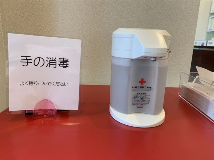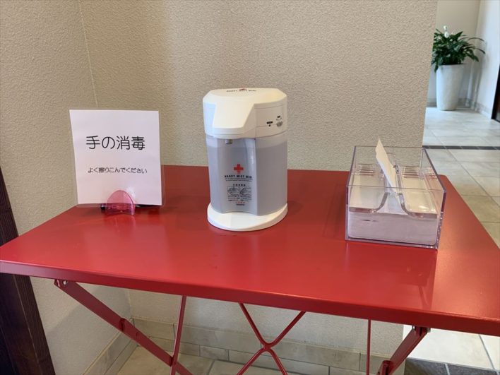 ➀お客様と社員が社屋に入る時はアルコール消毒をしていただいています。