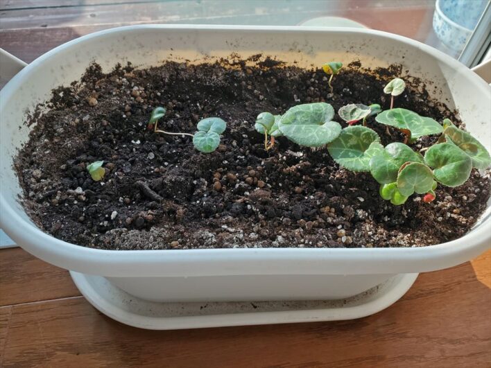 昨年7月頭に19粒種まきし、9月頭にヒョロヒョロと発芽したシクラメン。