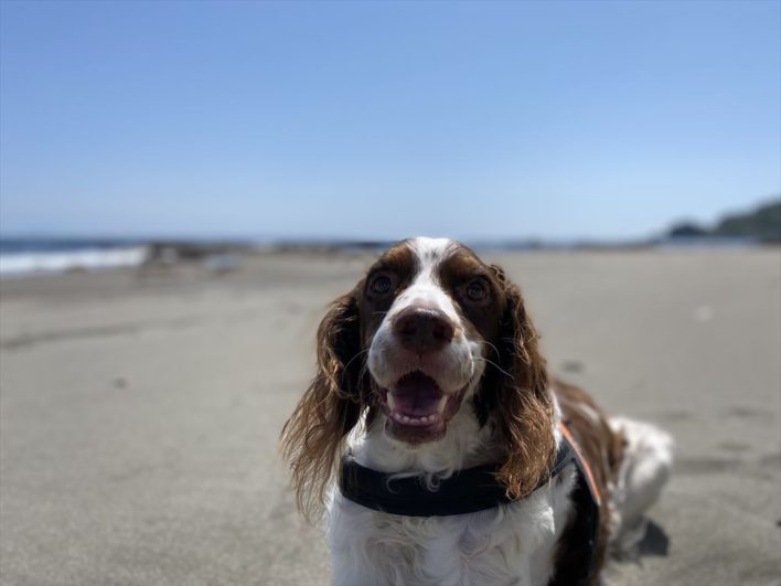 お手伝いをしたハリーにご褒美で最後は海で散歩です。