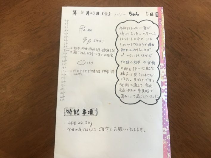 そんなハリーと一緒に手渡されたのがこの「お預かり日誌」です。