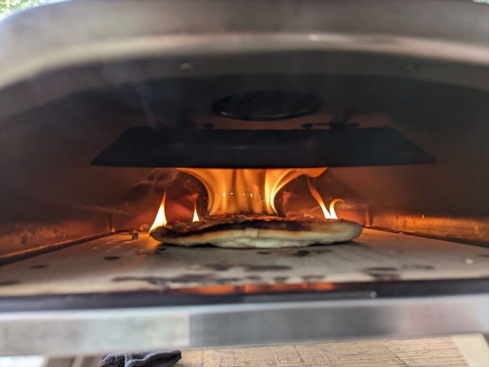 イイ感じに火が回ってきているので焦げない様にのぞき穴から見るのですが