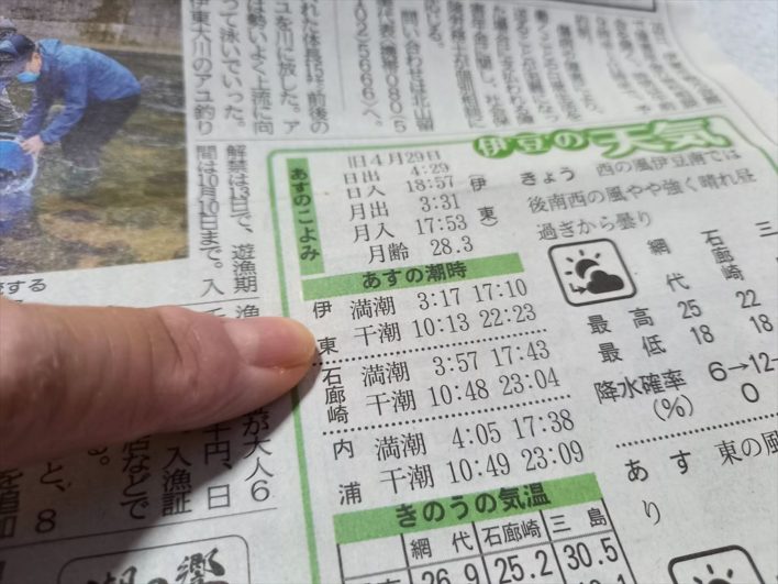 前日の伊豆新聞で干潮の時間を確認したところ、