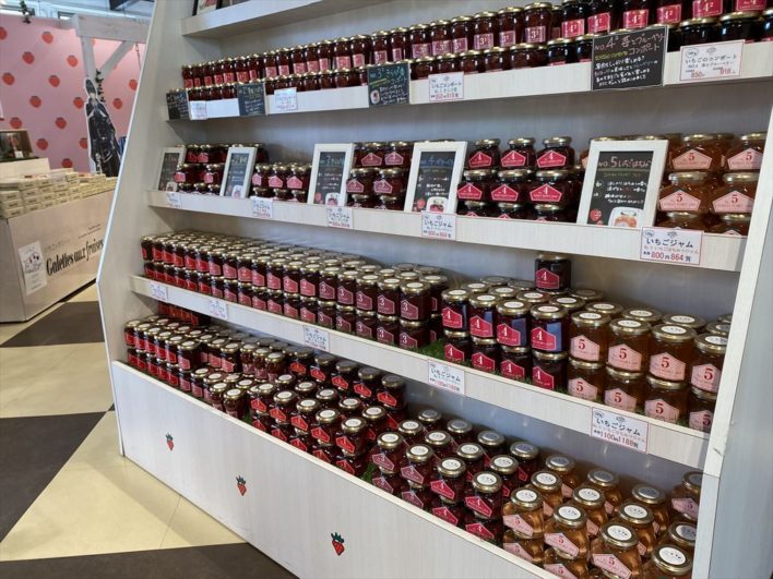 店内には、いちごのお菓子やジャムなどたくさんの商品が並んでいました。