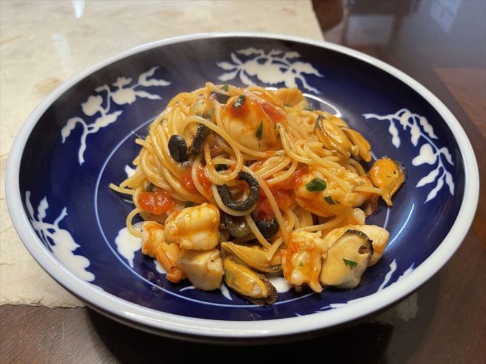 最近は応用でオリジナルレシピのペスカトーレを作ったりしていますが、