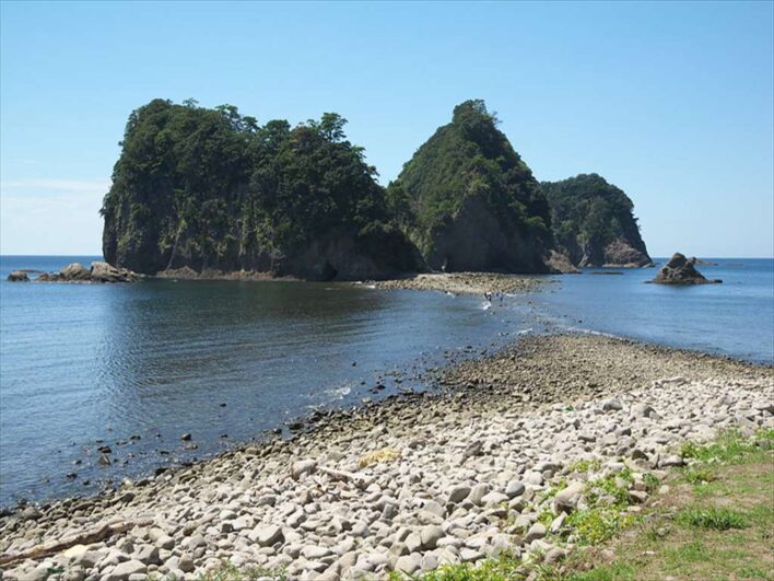 堂ヶ島のトンボロは長さ約200メートル、幅最大約30メートルで、