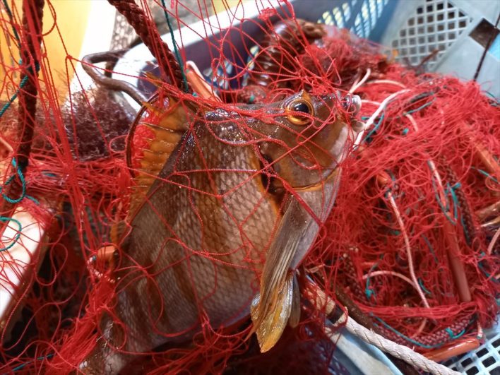 この程度の絡み具合なら、伊勢海老を網から抜くのは簡単なのですが