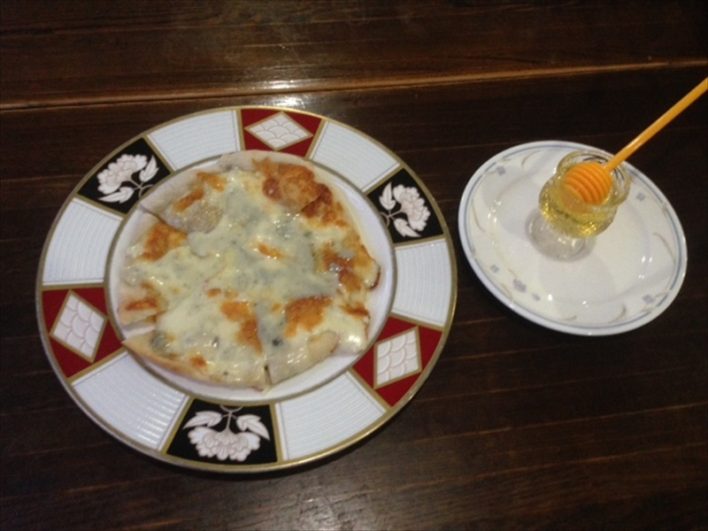 ゴルゴンゾーラのピザ、トスカナサラダを注文