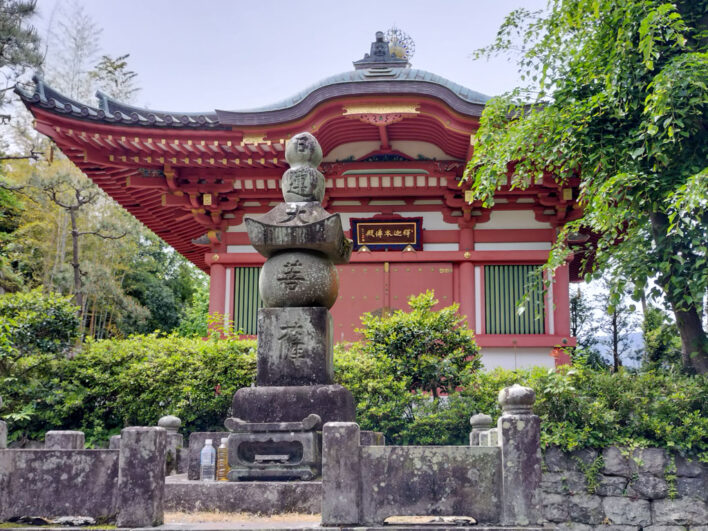 お墓の横の石段を登り、仁王門(旧山門)の脇にあるのが御霊石。