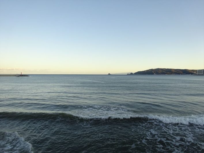 朝方なので暗いですが、夏の海水浴シーズンでも