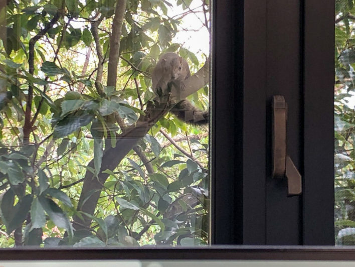 窓の外側には小鳥用にひまわりの種を入れる餌箱を社長が設置し、