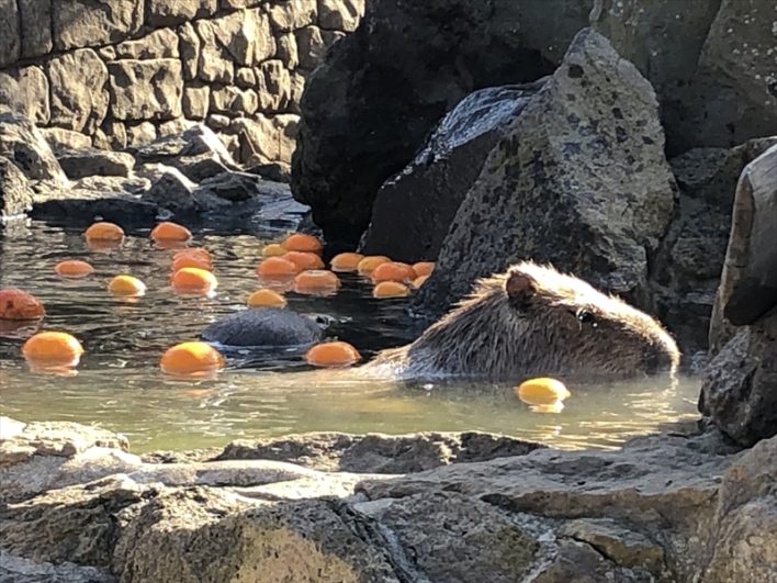 実際に見てみたいと思っていたシャボテン公園のカピバラ温泉。