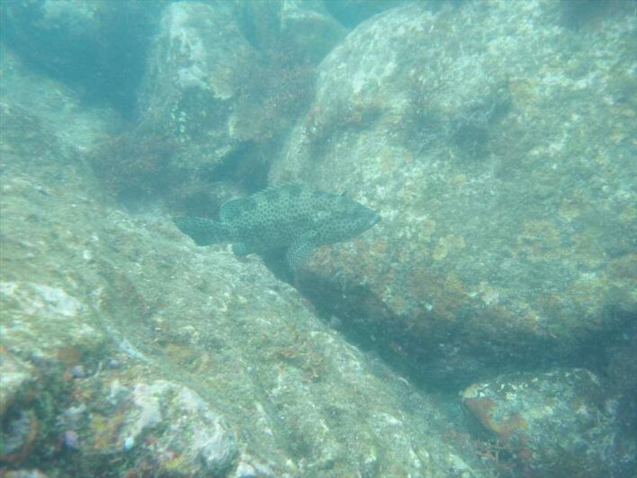 ダイビングの後半、現れたイシダイ。美人のカイドさんのボディガードです。