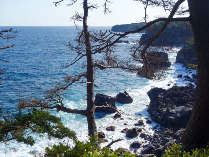 ところどころ木の間から海が見え、波の音が聞こえます。