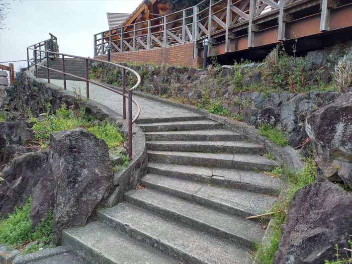 この階段を上がったところに駅があります。