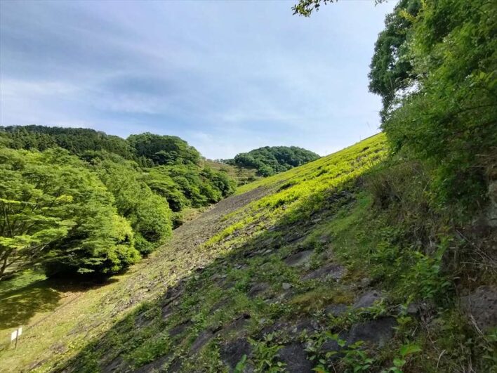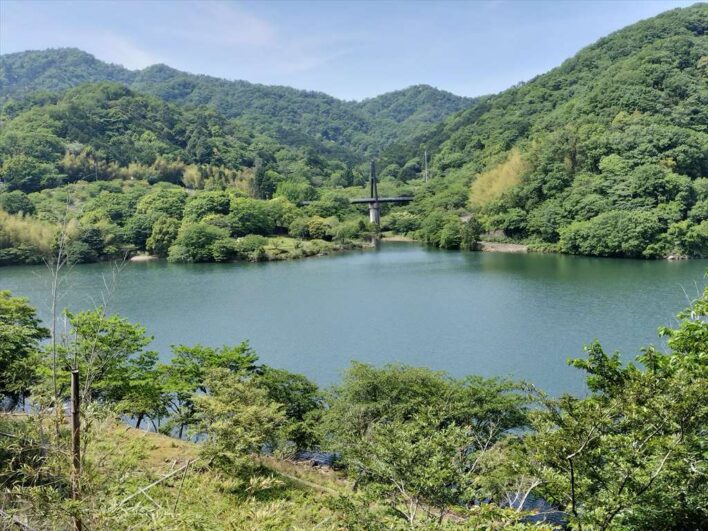 平成元年に完成した岩石や土砂を積み上げた「ロックフィルダム」です。