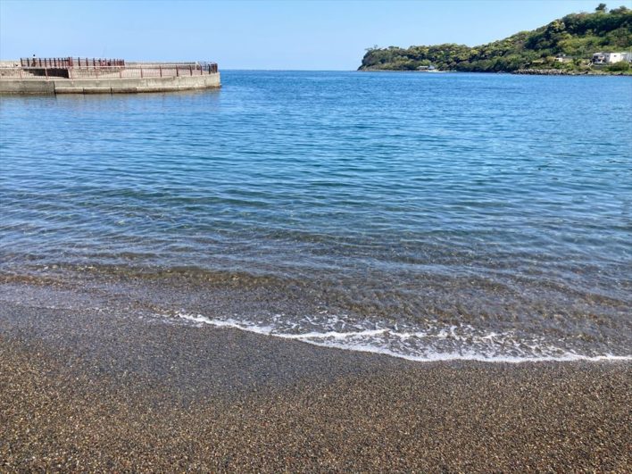 ビーチといっても砂浜ではなく、小さな石の浜です。