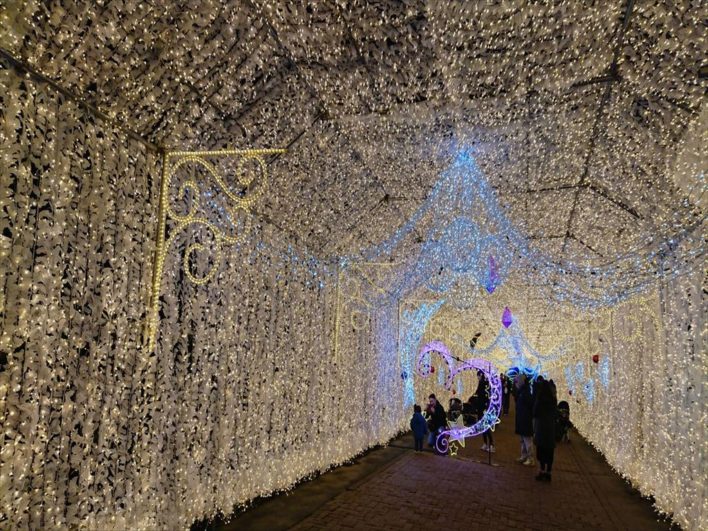 こちらの名物は光のトンネル、毎年テーマが変わります。