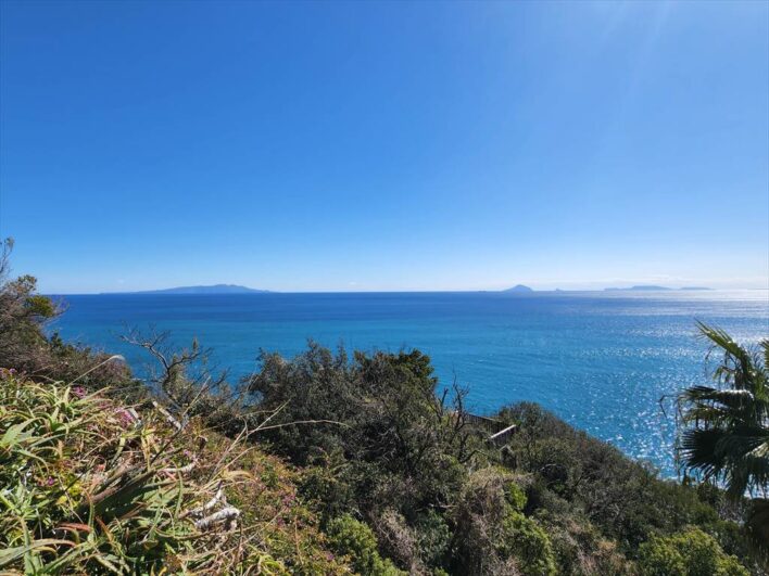 空気の冷え込みもあるので、水平線の先に見える島々の両端は、