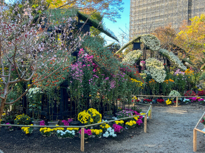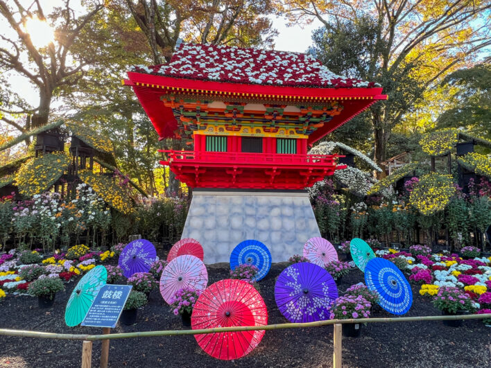 御社殿や楼門、鼓楼を約8,000鉢の菊の花で再現しています。