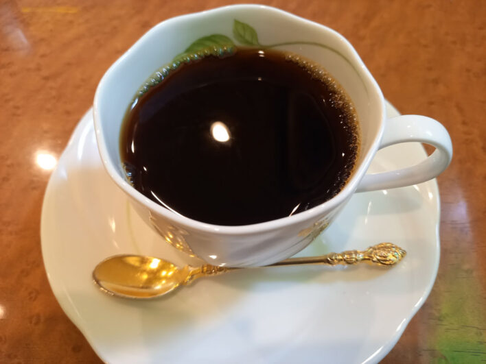 夏なのに、食べ終わる頃には、身体が冷えきってしまうので、ホットコーヒーで身体を温めます。
