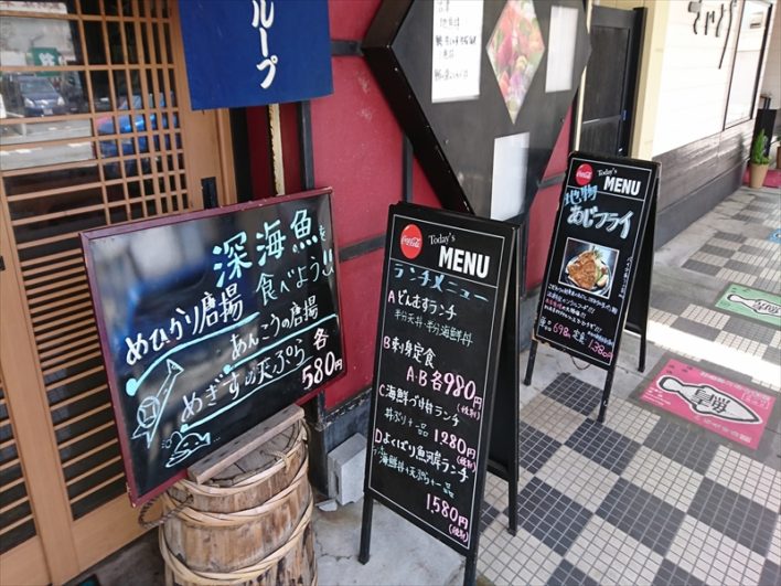 大きなアジフライ2枚、姿造り、骨せんべいが付いて凄いボリュームでした。