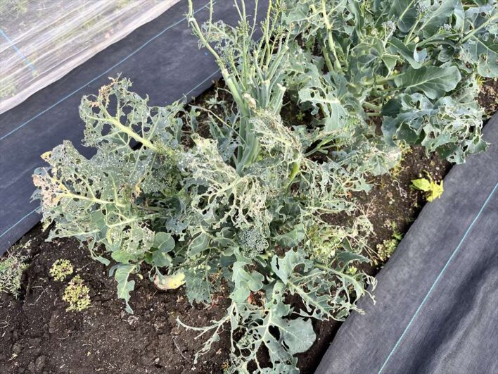 休みの日しか畑が出来ないので一週間経つとこうして犯人が食べてしまいます。