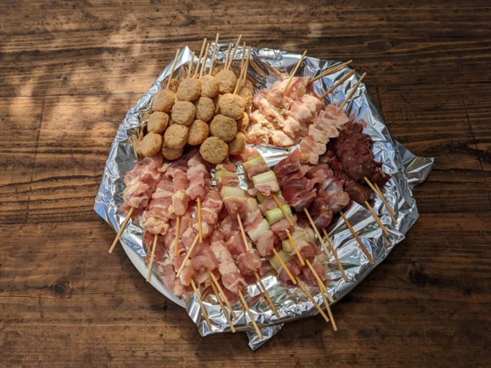 この日は卓上七輪で焼き鳥することにし串差しの焼き鳥を購入