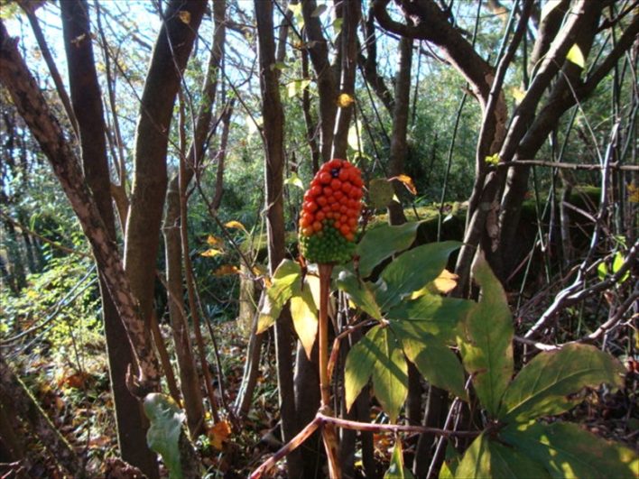 秋の気配を感じて、真っ赤に色付いた実をつけていることに気が付きます。