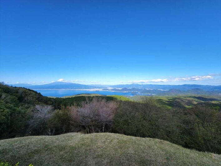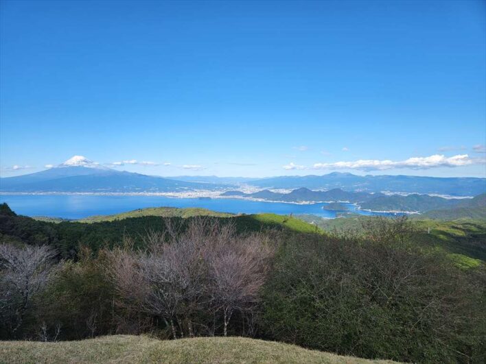 駿河湾と雪化粧で美しい姿になった富士山が見えて、とても綺麗な景色でした。