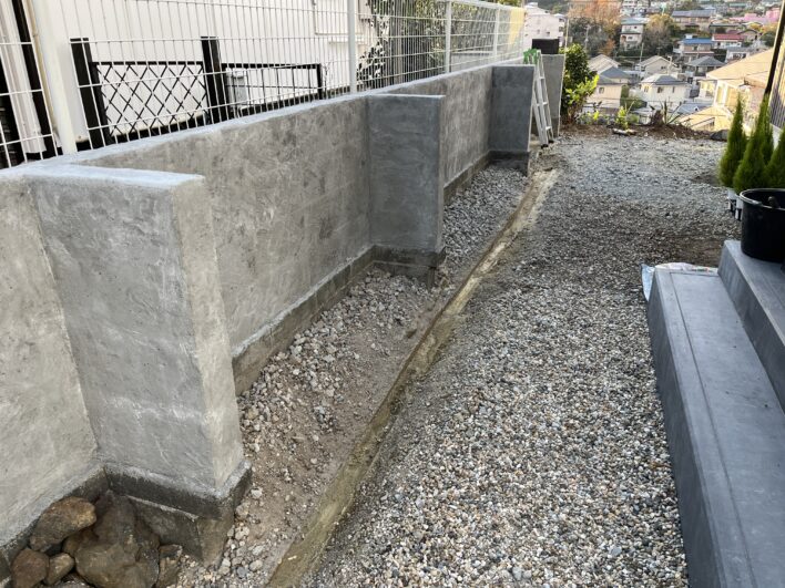 一生懸命、ブロック基礎の土台は削ったものの、