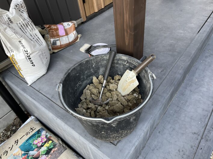しっかり固まってしまった固まる土を除去します。