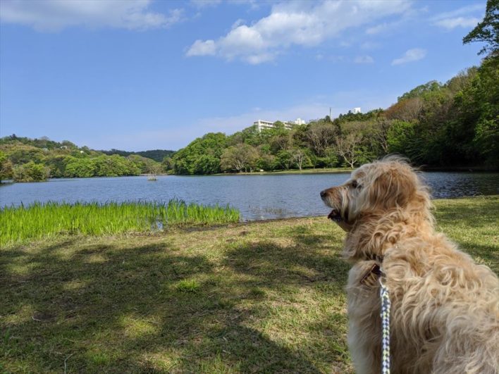 自宅から一碧湖まで約2.2kmあり、まるを連れて歩くと40分位でやっと一碧湖に到着します。