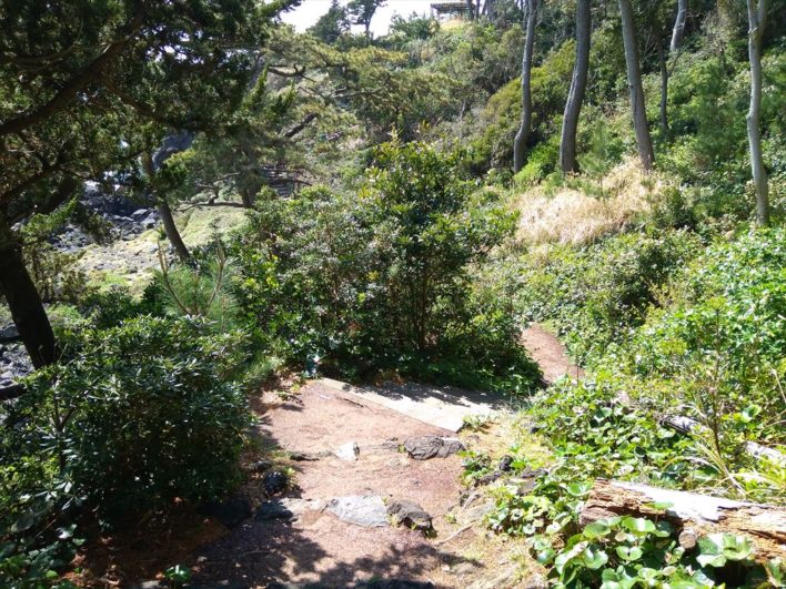 入口です。中間地点である吊り橋、門脇灯台を目指します。