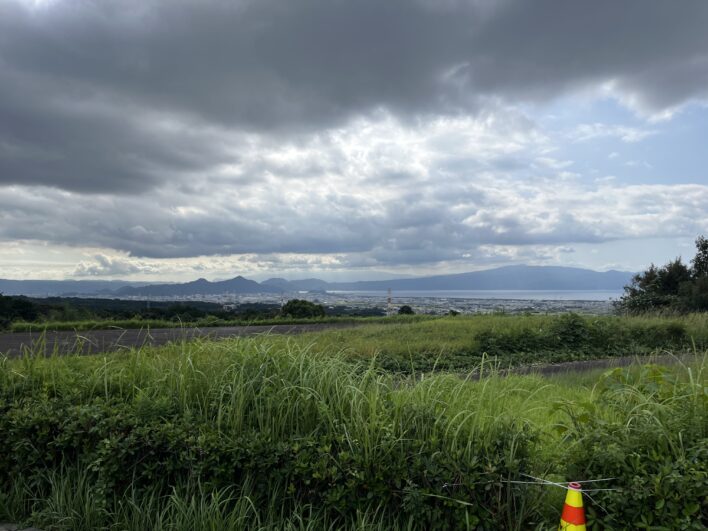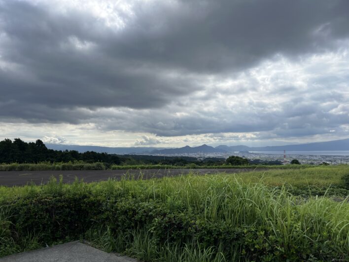 沼津の市街地と駿河湾、伊豆半島西側を望みます。