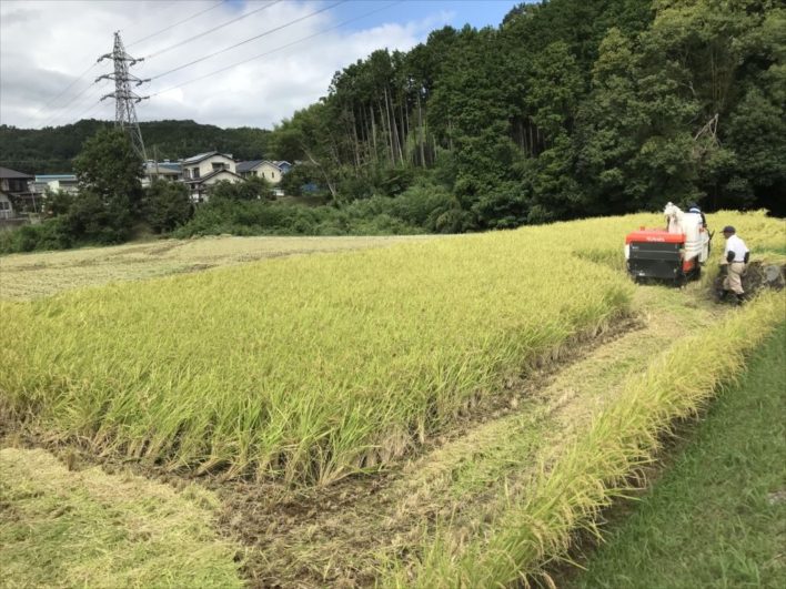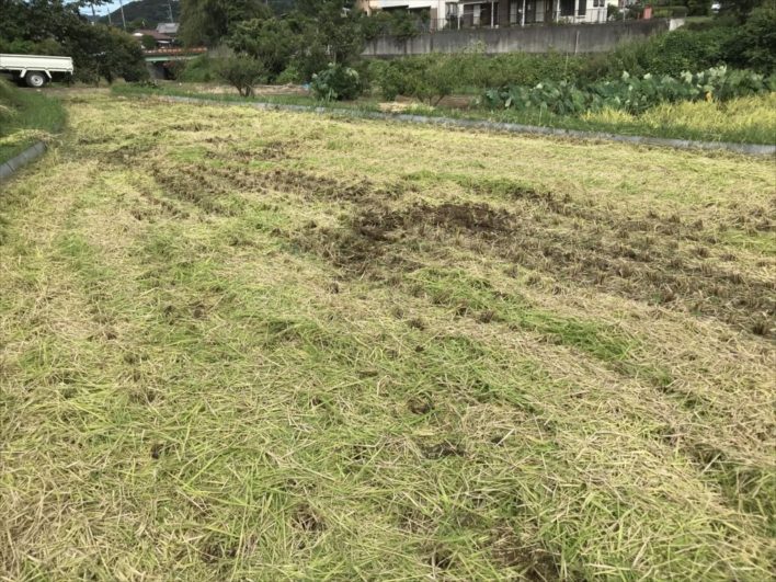 マシーンで刈りにくい隅っこや岩肌沿いを手で刈ったりしていきます。