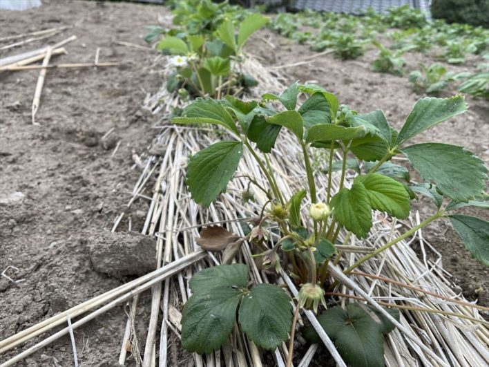 イチゴがイチゴっぽい形になってきました。