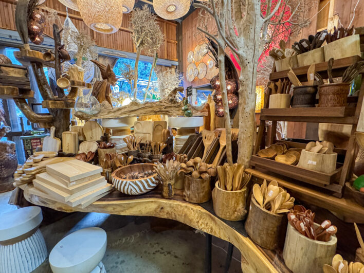 木で作られた温かみのある商品がところ狭しと並んでいます。